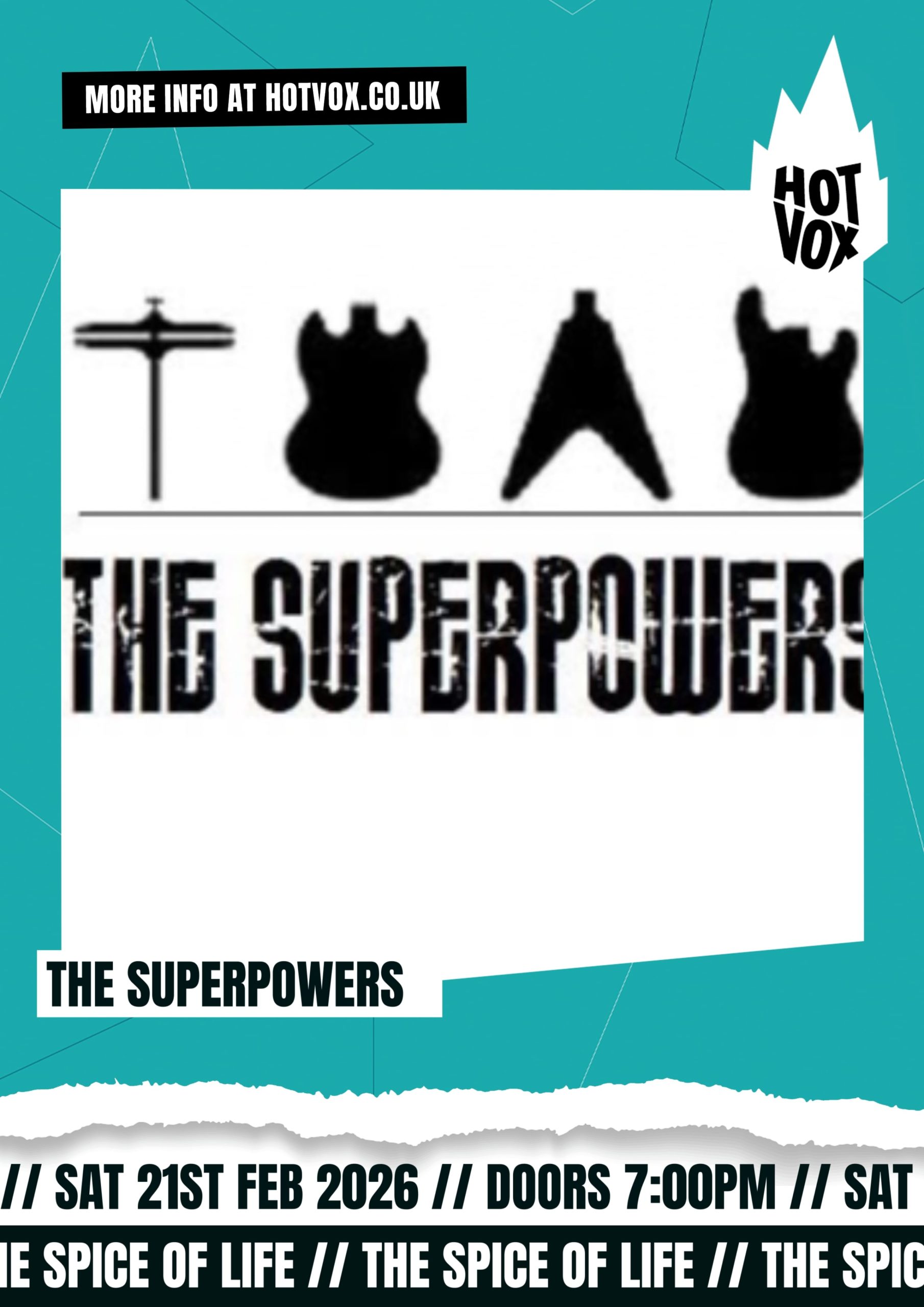 Based in Surrey but at home in the London clubs and the summer festivals around the South East and beyond. The Superpowers blasts out punchy, original rock music with melody and force. The tight twin lead guitar sound sets us apart from the crowd ... view artist profile