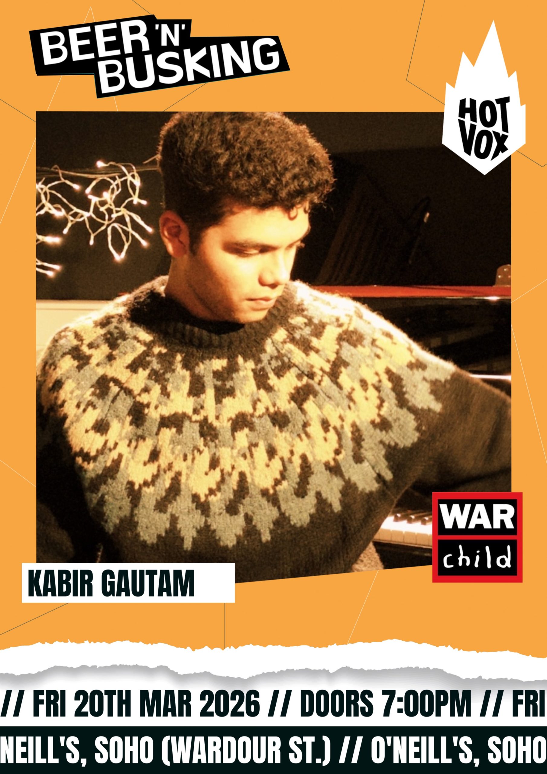 Experience the best-emerging talent that London has to offer with ‘Beer and Busking’ at O’Neill’s, Soho. Join us for a night of live music featuring some of the city’s most promising new artists. With a diverse lineup and fresh sounds, this event is a must for anyone looking to discover the best in new music! You can also show your support for the artists by leaving a ‘tip’ during their performance. All proceeds go to War Child UK to help children in areas of conflict.