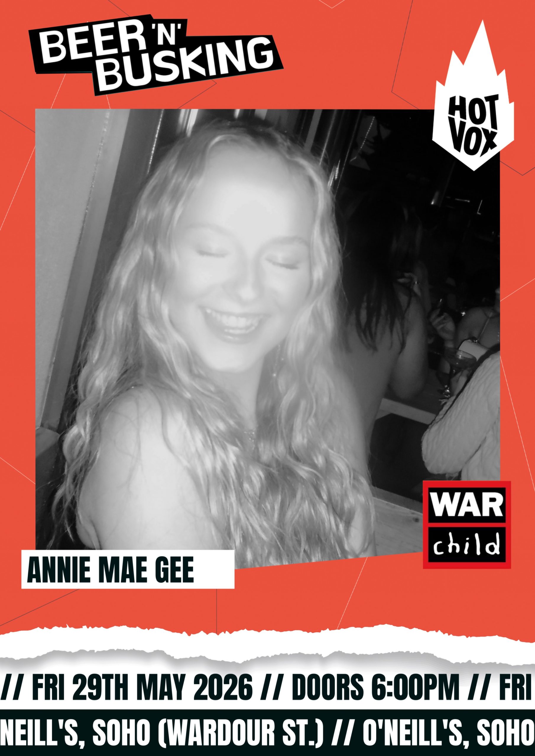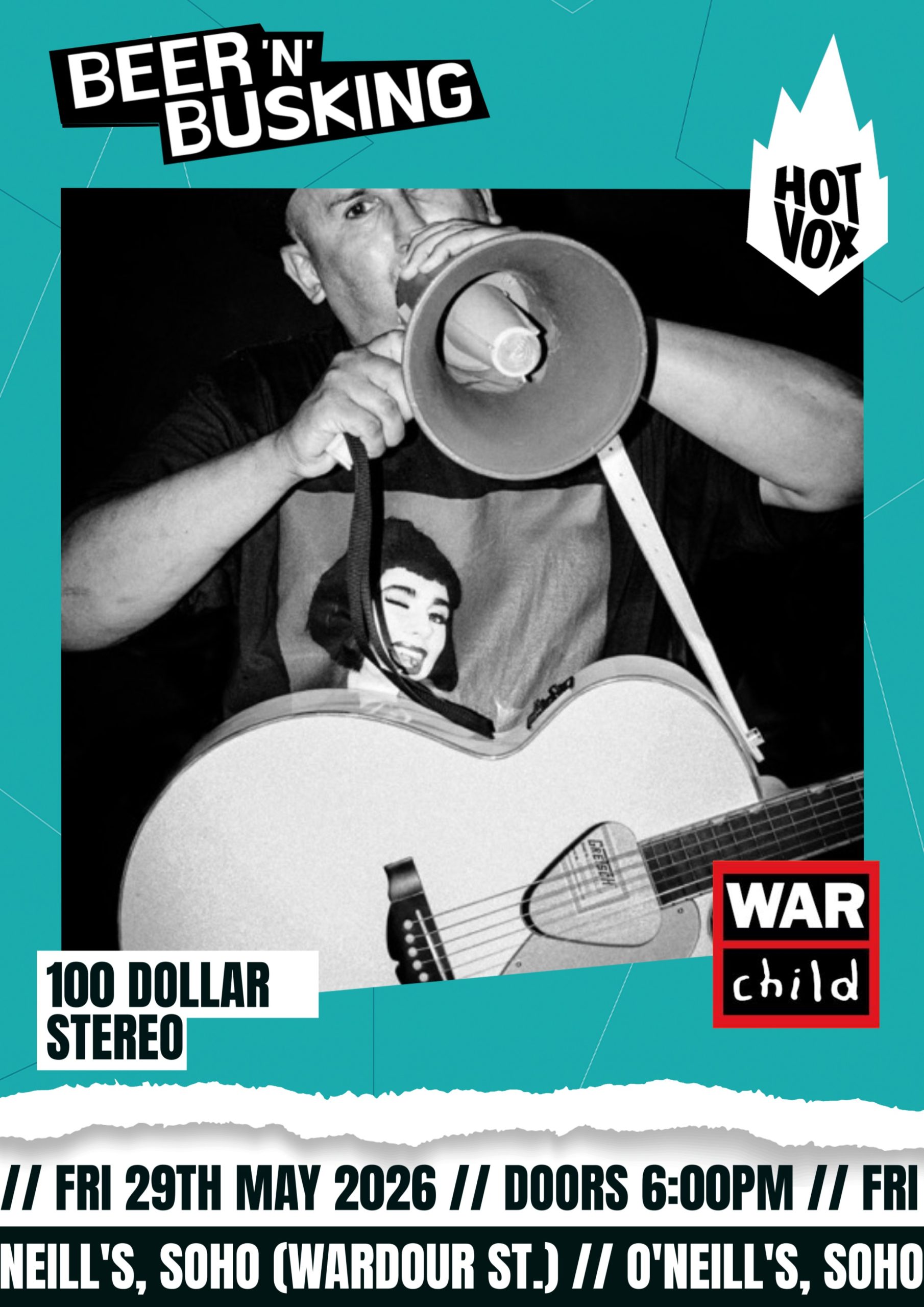 Experience the best-emerging talent that London has to offer with ‘Beer and Busking’ at O’Neill’s, Soho. Join us for a night of live music featuring some of the city’s most promising new artists. With a diverse lineup and fresh sounds, this event is a must for anyone looking to discover the best in new music! You can also show your support for the artists by leaving a ‘tip’ during their performance. All proceeds go to War Child UK to help children in areas of conflict.