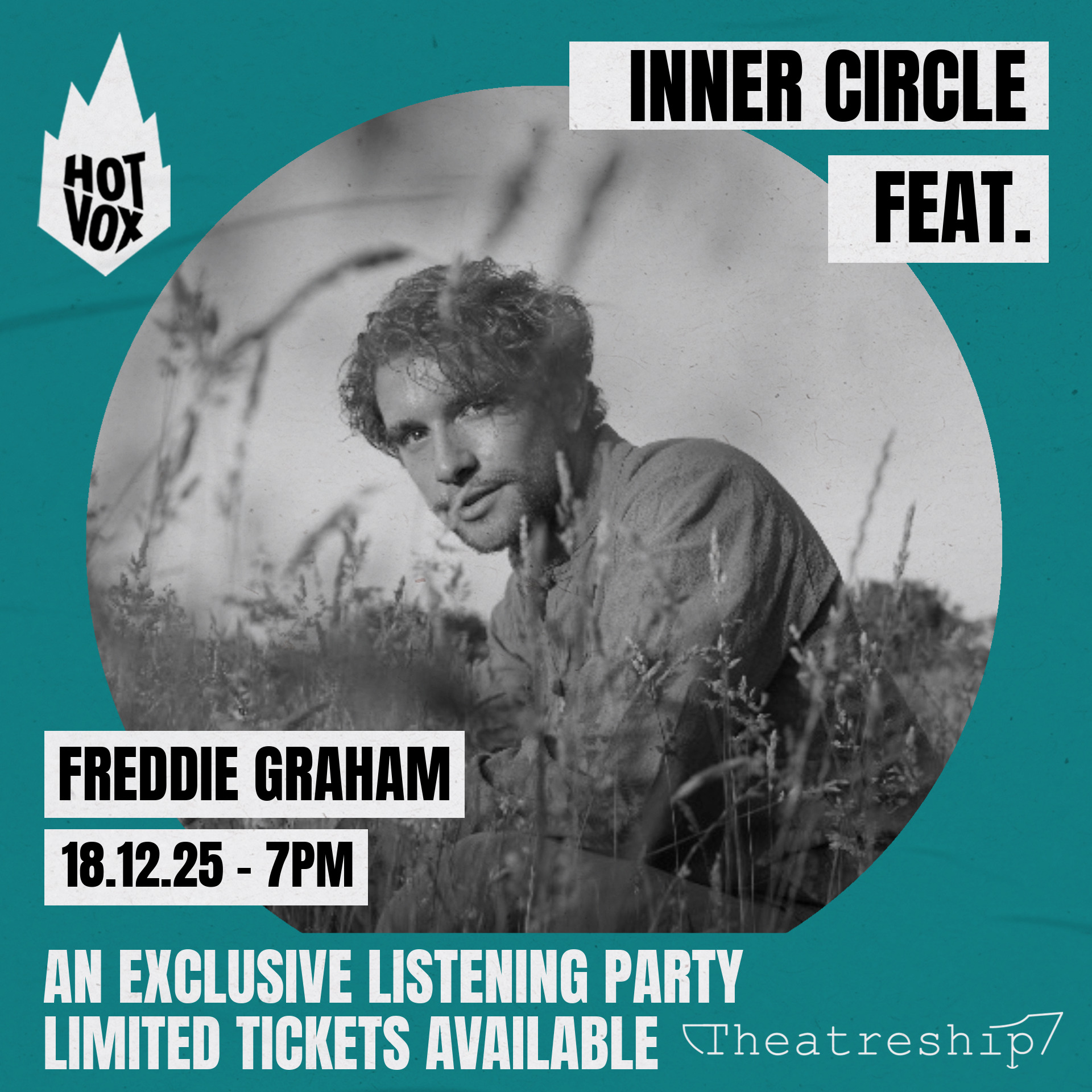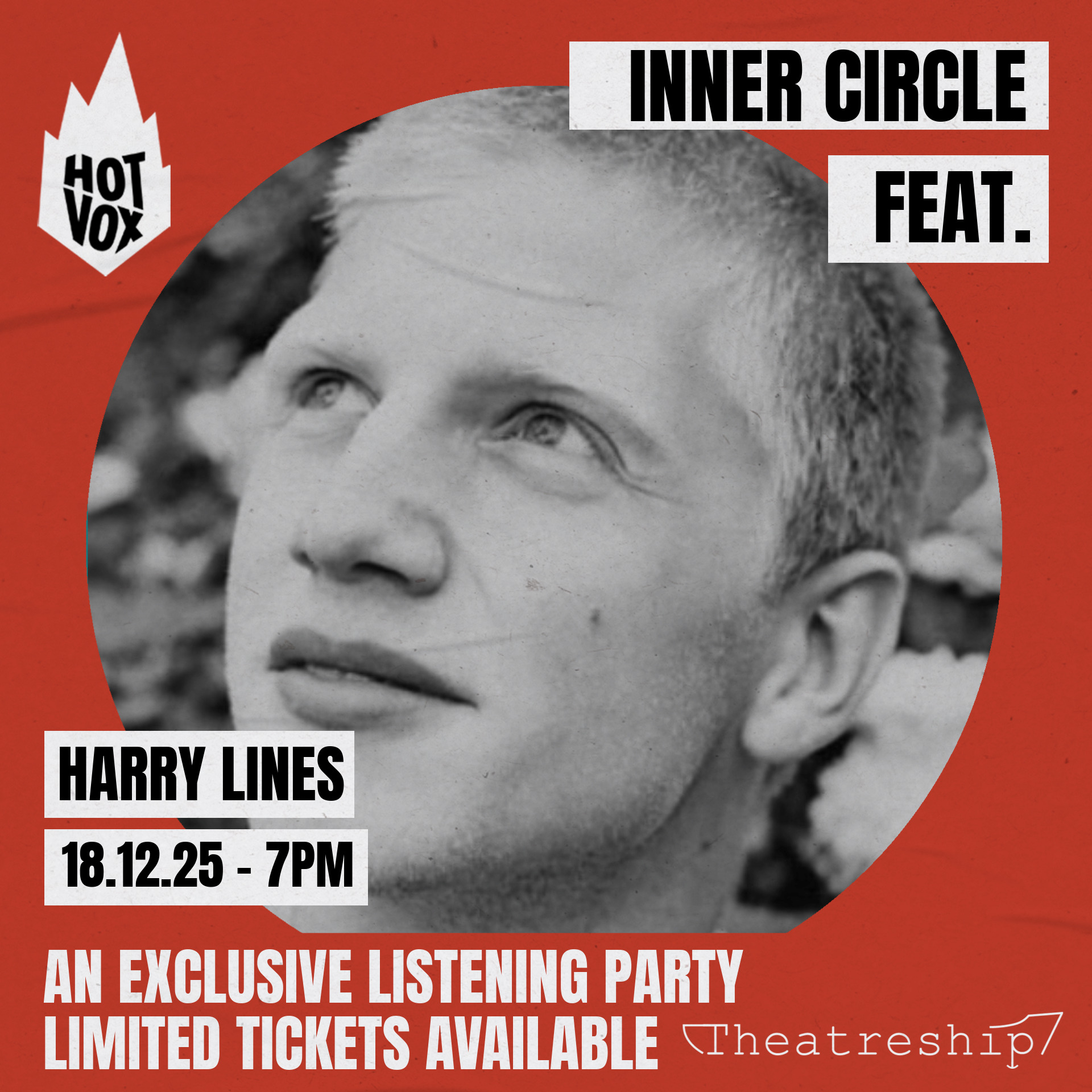 Inner Circle takes place on the 100 capacity Theatre Ship, a beautifully restored cargo ship over 110 years old. Please note, this is a theatre performance, not just a gig. Doors open at 7:00pm and all ticket holders must arrive before the show begins at 7:30pm or you may not be able to gain entry. There will be intervals for refreshments but we strongly discourage ticket holders from leaving until the whole show finishes at 10:30pm. If you can’t stay until the end of the show please refrain from buying a ticket.