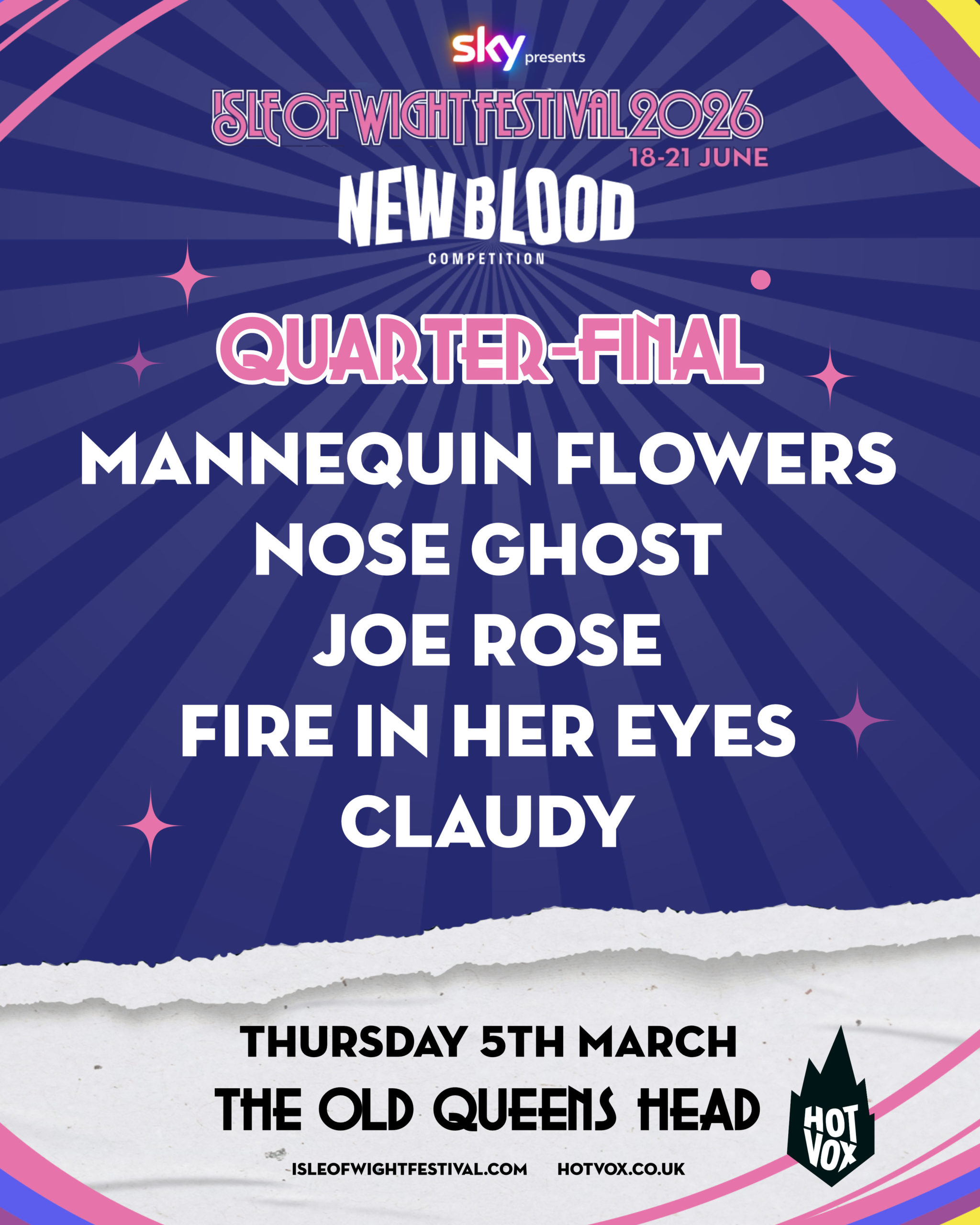 Out of the thousands of hopefuls that entered the Isle of Wight Festival New Blood Competition, only a handful now remain in the Quarter-Finals. These artists are some of the most exciting and promising acts on the scene and will all be competing for a coveted slot at Isle of Wight Festival 2026!