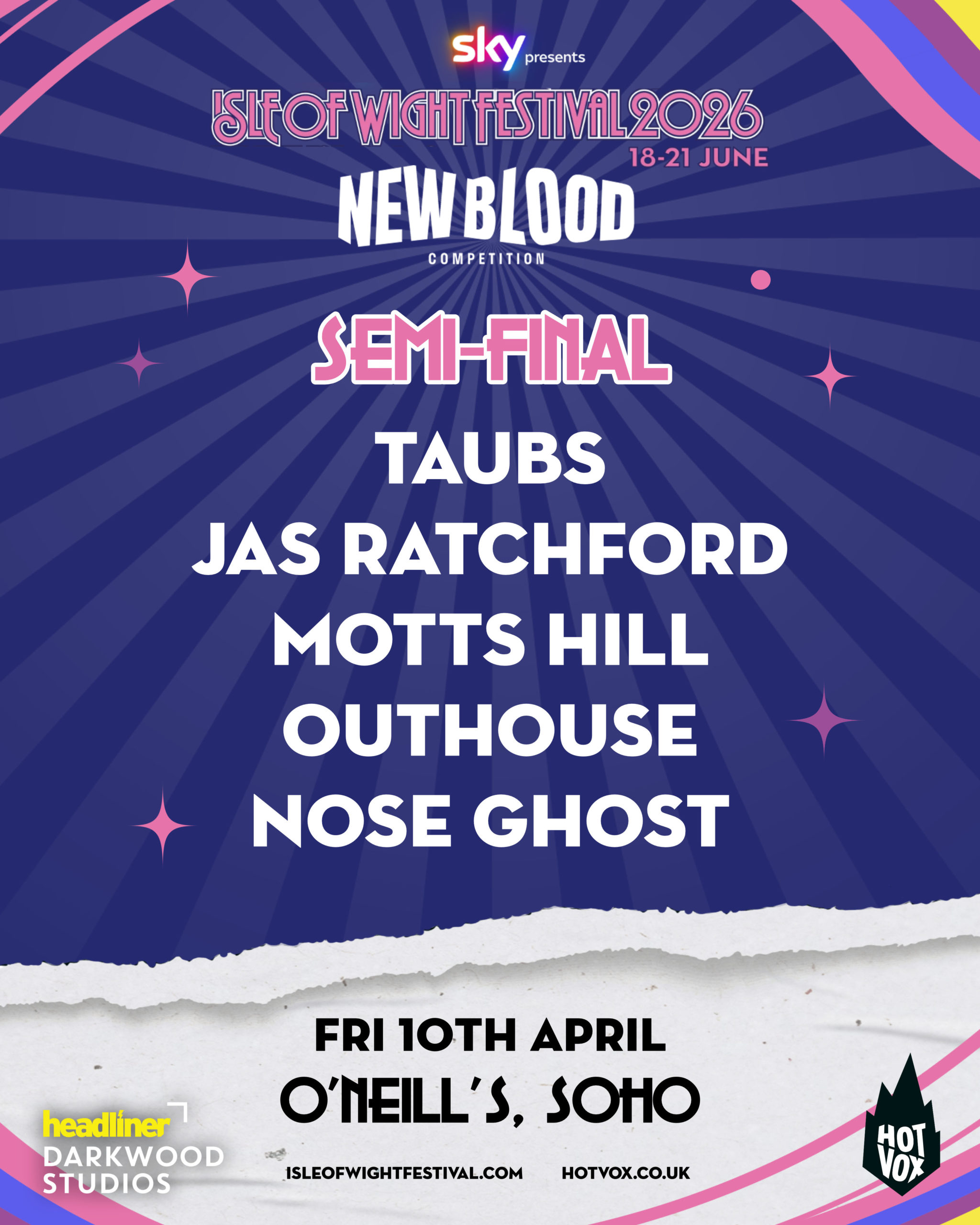 Out of the thousands of hopefuls that entered the Isle of Wight Festival New Blood Competition, only a handful now remain in the Semi-Finals. These artists are some of the most exciting and promising acts on the scene and will all be competing for a coveted slot at Isle of Wight Festival 2026!