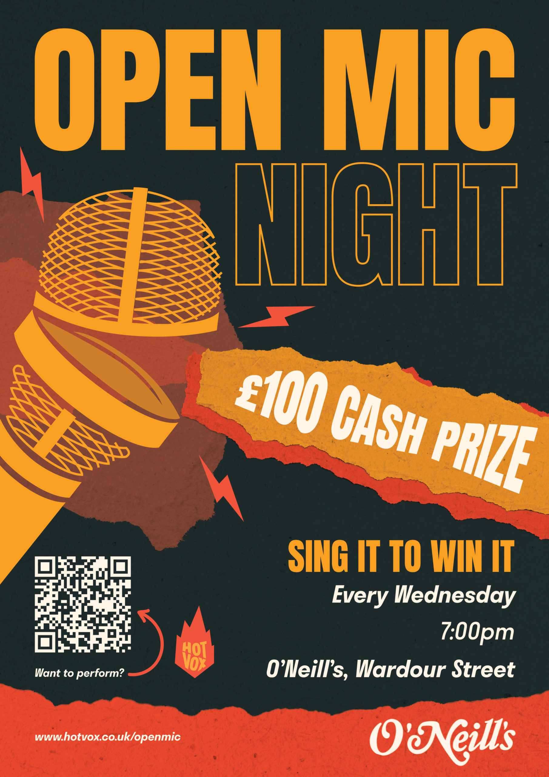Join us every Monday at 8:00 PM at O’Neill’s on Wardour Street for an electrifying night of music and good vibes. Whether you’re stepping up to the mic or cheering from the crowd, it’s the perfect event to grow your fanbase or discover your new favourite artist!