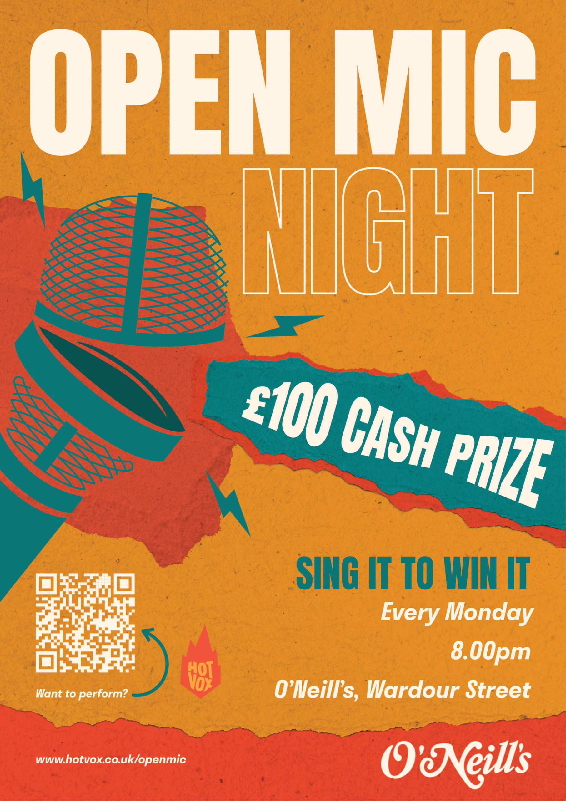 Join us every Monday at 8:00 PM at O’Neill’s on Wardour Street for an electrifying night of music and good vibes. Whether you’re stepping up to the mic or cheering from the crowd, it’s the perfect event to grow your fanbase or discover your new favourite artist!